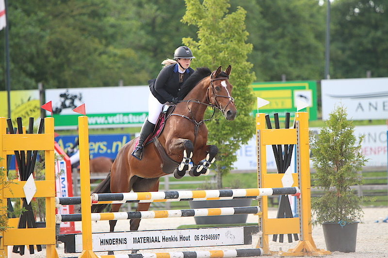 Donderdag 16 juni deed Anneke Heida met haar paard Full Speed (foto) mee aan een springwedstrijd in Tolbert. In de klasse 90 cm. won ze de 3e prijs met een foutloos parcours en een stijl van 67 pt. In de klasse 1 mtr. had ze één balkje en een stijl van 68 pt. Dit leverde haar een winstpunt op. Kenna Bakker startte zondag 19 juni met Ginfonia DKB in de Intermediaire I (lichte tour) te Vrouwenparochie. Ze scoorde 63,97% en een 5e prijs. (1wp.)